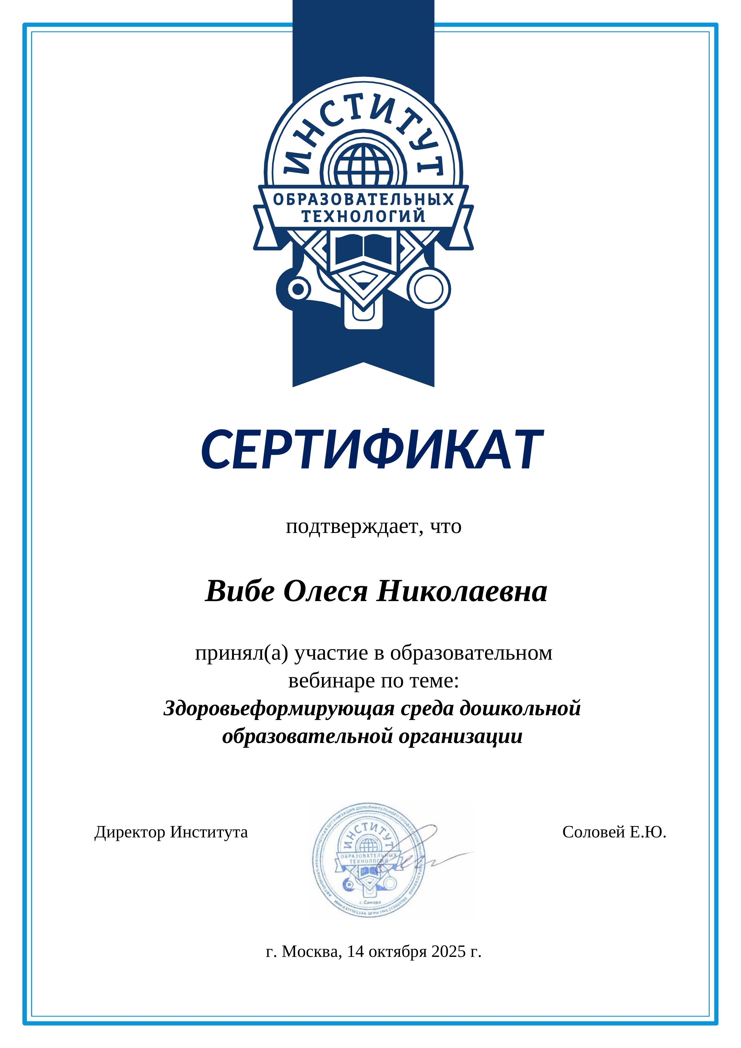 сертификат об участие в вебинаре по теме: